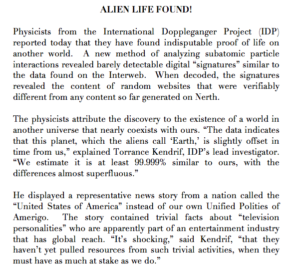 READING NEWS FROM OTHER UNIVERSESSINCE 2014 - SEE ARCHIVE